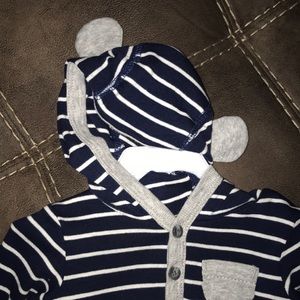 Striped onesie with a bear hoodie and matching pants