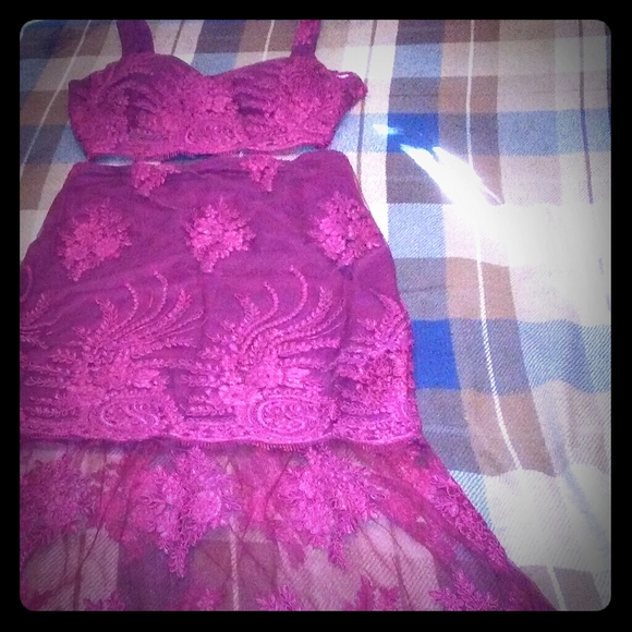 Embroidered mesh skirt with middrift matching embroidered top