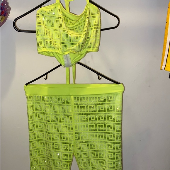 Crop top and biker shorts matching bling set