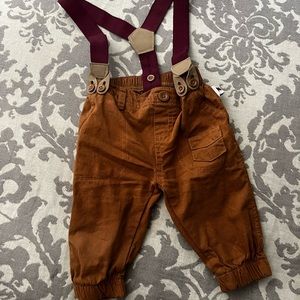 Cute kaki joggers w/detachable suspenders. Jean top onesie. All buttons attached no flaws Bundle two or more items for a discount.