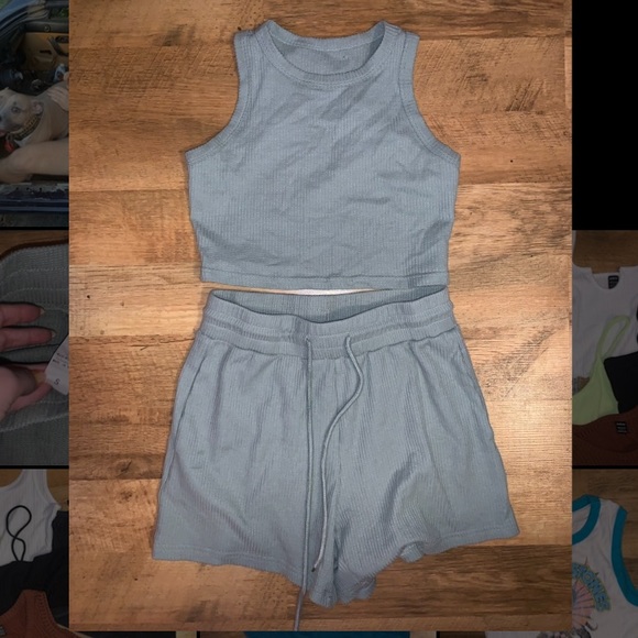 Tank top and shorts matching set in sage green color originally from amazon size small