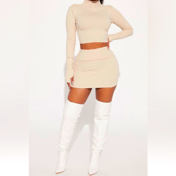 Soft with brushed fabric, fold over skirt, mock neck long sleeve crop top. Sold out on original website. Worn once