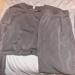 Grey matching set. Never worn. Pants are not tall girl friendly. No rips.