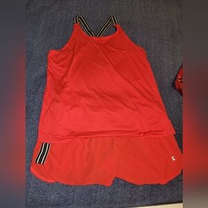 Matching racerback tanktop & short set. Shorts have built-in undergarments. Breathable & loose fitting.
