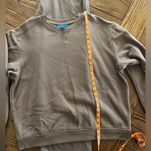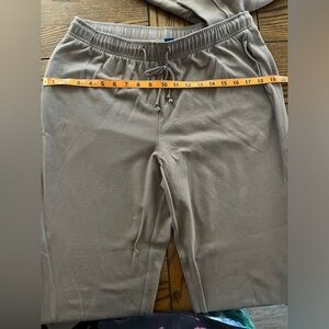 Wide leg pants with elastic waist and drawstring. Lightweight pants and matching sweatshirt.