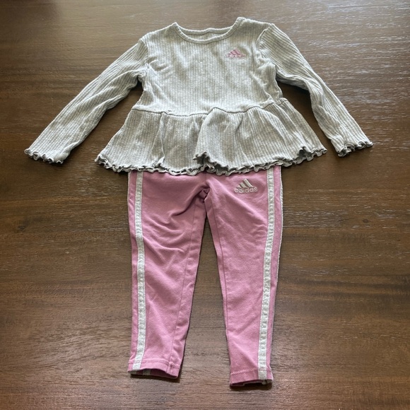 Adidas matching set long sleeve shirt and leggings. Size 2T. Excellent condition. Check out my other listings to bundle and save!