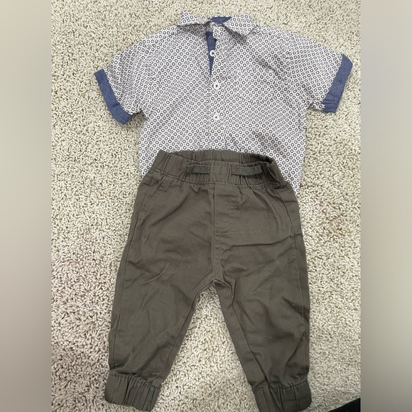 Green pants and matching onesie button down 6-9 month