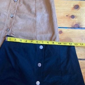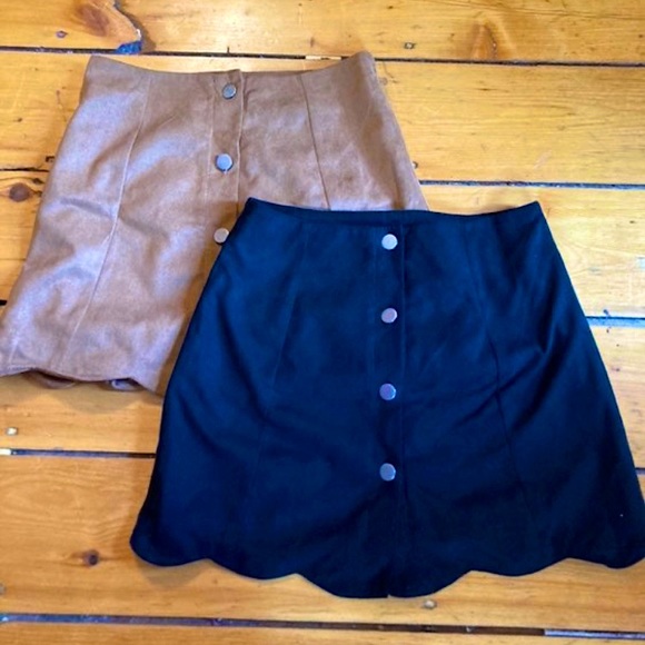 Two super cute velvety suede-like material skirts, one tan and one black. The buttons are all real. Both are the same size and style.