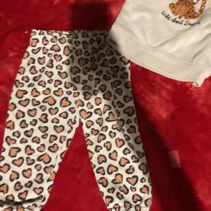 Cheetah print sweat pants with a beige sweatshirt with a cheetah on it that says wild about daddy