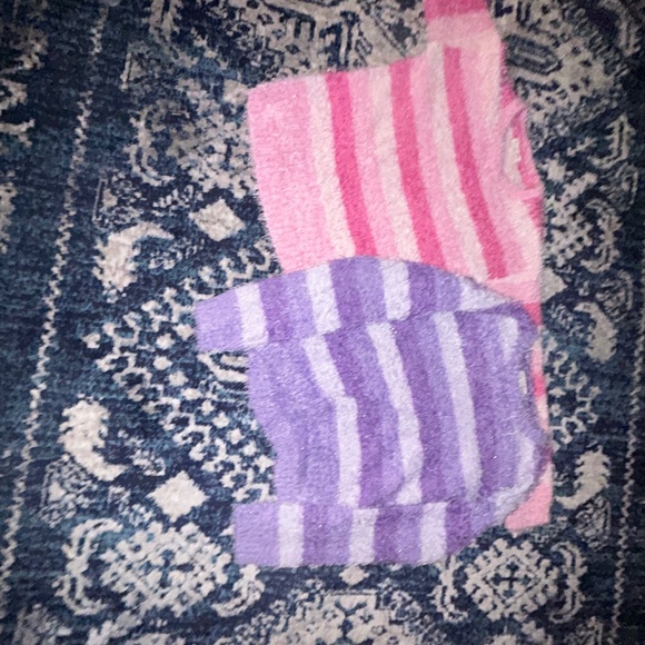 Purple and purple matching sweaters, striped, fluffy and soft. Wear with your best friend/sibling.