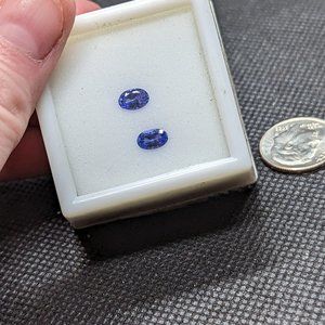 Matching gorgeous dark tanzanite stones. Set of 2. Not set and loose but come in pictured container.