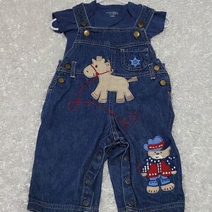 1-3/6mth bodysuit and embroidered jean overall (2pc)