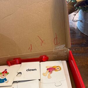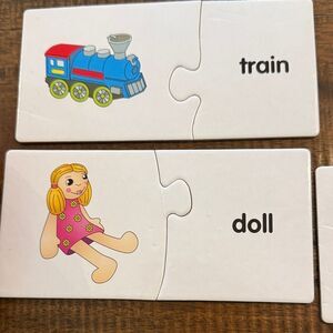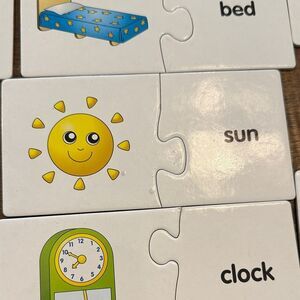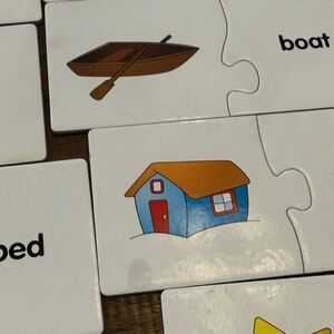 Discover a fun and educational puzzle set featuring animals and objects. This engaging toy helps develop matching skills and in helps with words.