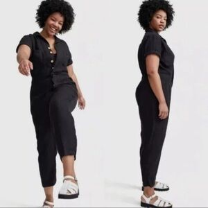 Mate Organic Linen Black Short Sleeve Jumpsuit Size Small