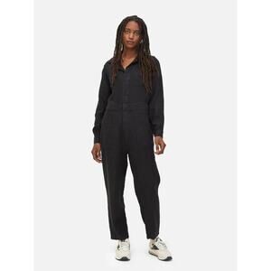 Mate The Label Linen Jumpsuit Long Sleeves Button Front Pockets Black Small NEW