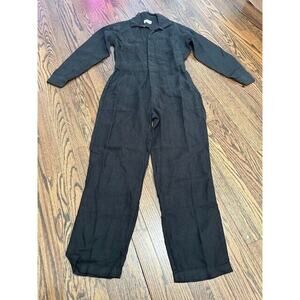 Mate The Label Linen Jumpsuit Long Sleeves Button Front Pockets Black Small NWOT