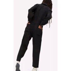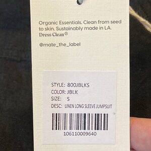 Mate The Label Women's Linen LS Jumpsuit SMALL Black Cropped Organic Pockets