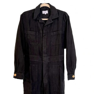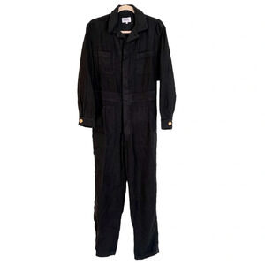 Mate the Label Linen Long Sleeve Jumpsuit Jet Black Small NWT Coastal Minimalist
