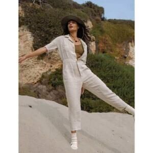 Mate the Label Linen Utility Jumpsuit Womens Size M Beige Neutral Minimalist NWT