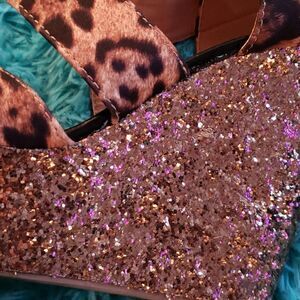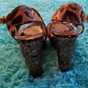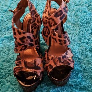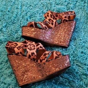 Material Girl 5" Leopard Glitter Wedges Size 8
