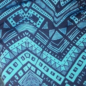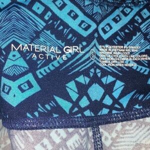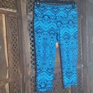Material Girl active Capri legging on blue on blue Aztec print. Size S with an 8” rise.