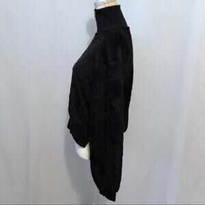 NWT. Black Faux Fur Top for Women Size M. Pullover, gold zipper halfway down for ease of wear, long sleeves, banded cuffs and bottom hem, side slits, soft to touch. Necklace not included. Pictures are part of description.