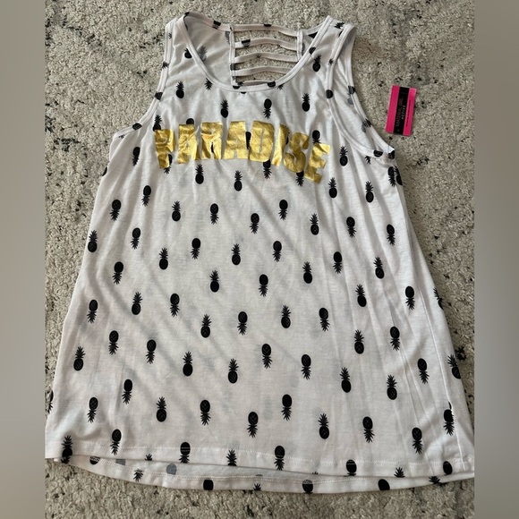 Material Girl Active Women’s Pineapple Paradise Graphic White Tank NET SZ: XL