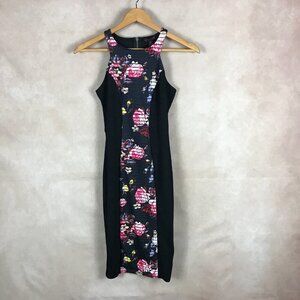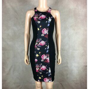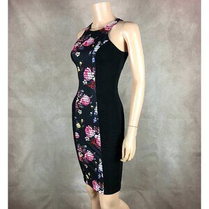 Material Girl Black Floral Striped Bodycon Dress NWT XS