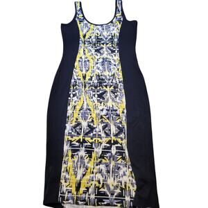 Material Girl Black Yellow Aztec Print Bodycon Dress Women’s Medium Knee Length