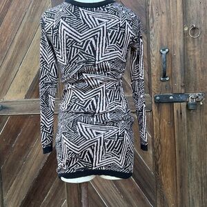 Chic knit dress with black and white pattern. Ideal for stylish outings.
