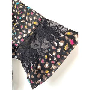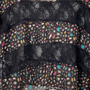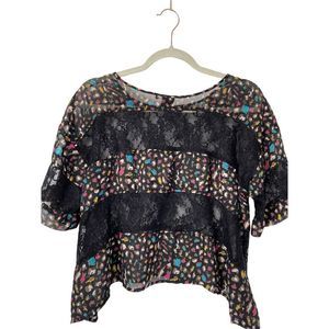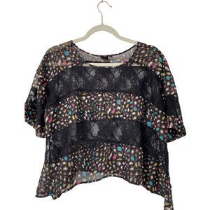 Material Girl Black Lace Short Sleeve Sheer Cropped Top Medium