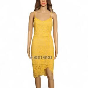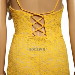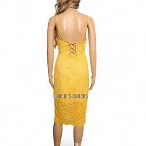 Material Girl Golden Yellow Lace Midi Dress Lace Up Back Asymmetrical Hem Size M