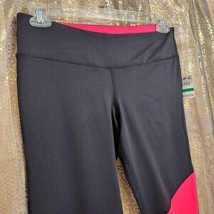 Material Girl Juniors Large Hot Pink Black White Colorblock Athletic Leggings NWT