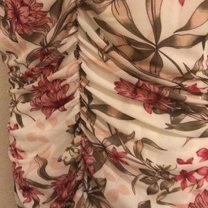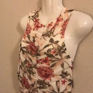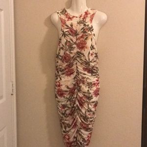 Material Girl Racer Back Dress - Ruched allover; center seam at front and back; racerback design Knee length; bodycon silhouette High neckline; back button-loop closure with keyhole opening nylon/spandex; lining: polyester Size XXL but fits like a L & stretches a lot