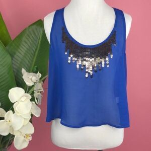 Material Girl Sheer Royal Blue Sequin Flowy Crop Top
