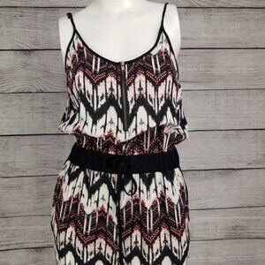Material Girl Size S Crop Pant Jumpsuit Zipper Front Elastic Waist Side pockets