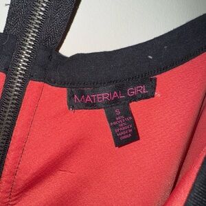 Stylish pink dress with black straps. Features a unique cut-out design.