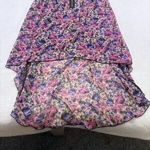 Material Girl Zip Corset Bustier Sleeveless High Low Dress Floral Chiffon XL