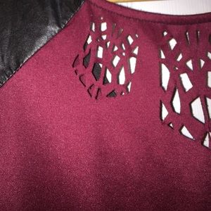 Maroon dress with laser cut design and faux leather paneling on top. Has a few snags on the dress and slight piling, see pictures!