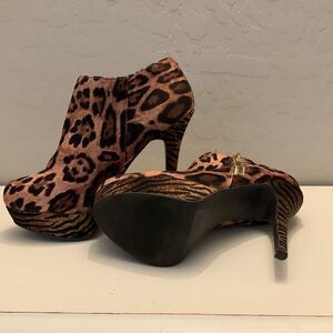 Material girl leopard print platform booties w/5 “ heel and 1 1/4” platform