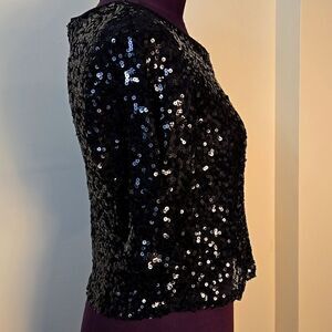 Material Girl Black Sequin Crop Blouse