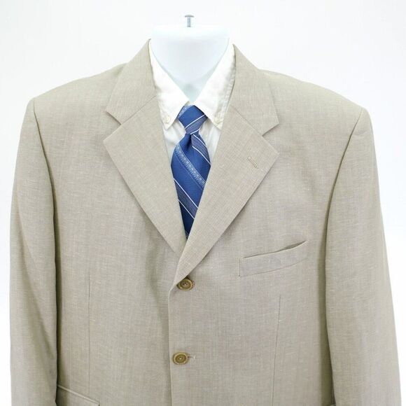 Material London Marzotto Linen Blend Blazer 40R 3 Button Sand Tan / Beige