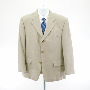 Excellent Pre-Owned Condition meticulously looked over no visible tears, stains, or smells. Measurements are taken with garment laid flat. All of our menswear have a universal Classic Measurement, that is why there can be a difference between tagged and titled measurement. Regardless of what the tag might say to get the sizing of the jacket I doubled the measured pit to pit portion and subtracted 4 inches (traditional measurement)and rounded up to the nearest even number. For length I measured the back of the jacket short is under 30 inches regular is 30 - 32 inches and long is anything over 32 inches. Please see measurements in description and compare to your size.