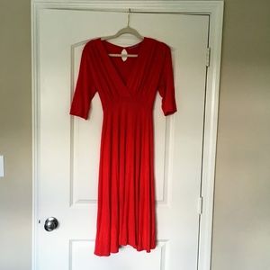 Beautiful red maternity dress that you can wear before, during, and after your pregnancy. The dress has lots of stretch that will well suit your growing body. The empire waist is a very flattering maternity style.