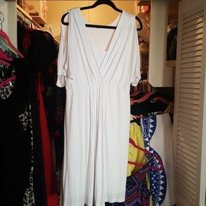 This maternity dress is perfect for summer. It's light in color and material. I wore this once and paid over $100 for it. It's in perfwct condition. It has slits on the arms and the under layer unhooks so you can breastfeed if you wear it postpartum.