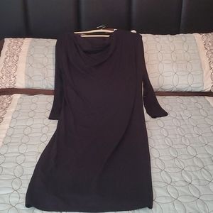 Stylish asymmetrical black dress, long sleeve, super comfy, stretchy!