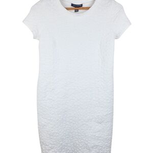 This A Pea In The Pod dress features a solid white color, a pebble texture, short sleeves, a knee length hem and a T-shirt fit.