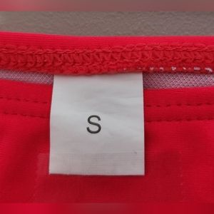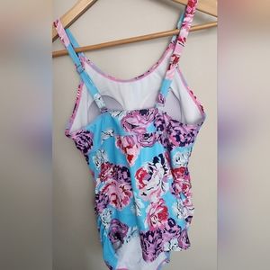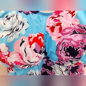 Adjustable straps. Comes with solid colored side-tie bottoms that match the orange red colors within the flowers (bottoms never worn, new).
