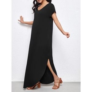 Maternity Batwing Sleeve Hidden Pocket Curved Hem Dress