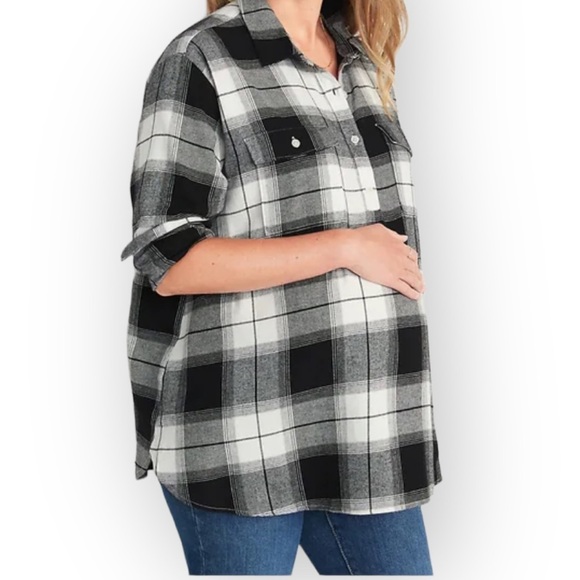 Maternity Black Buffalo Plaid Long Sleeve Boyfriend Shirt. NWT